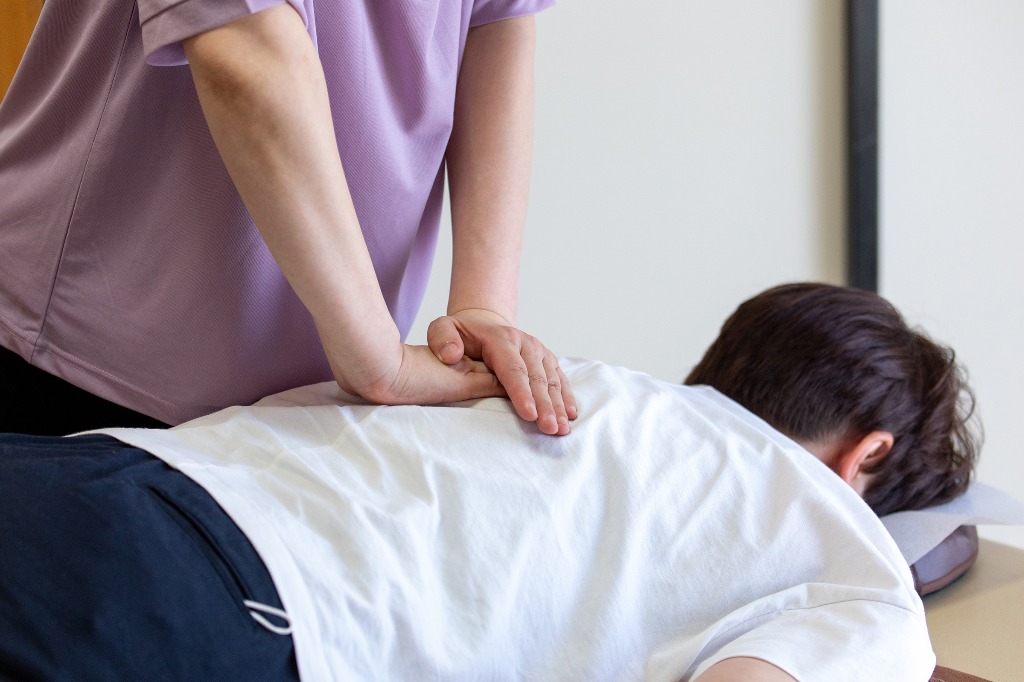 ツボ押し・筋肉ほぐしなどで骨盤や背骨のバランスを整えていきます。